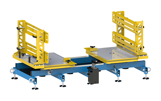 W standardowej wersji SmartMould Table (MT_K) LowProfile solidny, spawany stelaż gwarantuje optymalną stabilność i bezpieczeństwo podczas serwisowania i konserwacji form wtryskowych. Jedna platforma pozostaje nieruchoma, a druga porusza się po prowadnicach liniowych z blokadą w pozycji końcowej, co ułatwia rozsunięcie formy i dostęp do jej wnętrza. Obie platformy mogą być obracane o 360° i blokowane co 90°, umożliwiając swobodną pracę nad każdym elementem narzędzia.